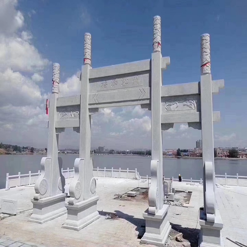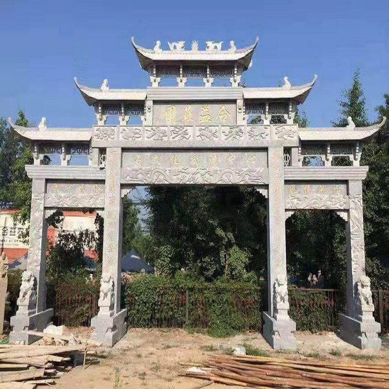萬(wàn)泰石材專業(yè)加工石牌坊,石雕牌坊,村牌樓,石牌樓選用優(yōu)質(zhì)石材,雕刻栩栩如生。