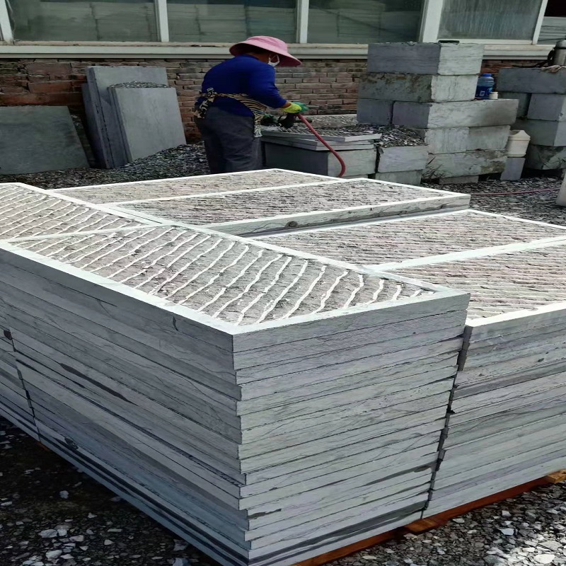 青石板手打面切割:使用石材切割機(jī)將青石板切割成所需尺寸的毛板。